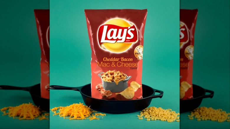 Back in 2014 (when the Wasabi Ginger flavor won the Do Us A Flavor Contest), three other chip flavors became finalists, and Lay's Cheddar Bacon Mac and Cheese was one of them. Out of all the flavors on this list, this one might just sound like the most accessible. After all, cheese and bacon are both beloved flavors that aren't likely to alienate many snackers. Although this flavor didn't win the contest, it was still widely celebrated amongst snackers. "I want bacon mac n' cheese back so bad, I remember getting excited one time when they brought them back," said one Redditor.