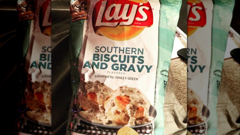 Throughout the years, there have been a lot of Do Us A Flavor contest finalists that were absolutely delicious, but not all of them ended up actually winning the contest. However, Lay's Southern Biscuits and Gravy was one flavor that absolutely did rise to the top. If you've ever had legitimate biscuits and gravy from the South before, you'll understand why. That combination of the buttery richness of the biscuits themselves combined with the meaty and herby flavor of the gravy is deeply decadent. It only makes sense that it's a flavor combo that would shine in snack form as well. However, this flavor was off shelves by 2016, never to be seen again.