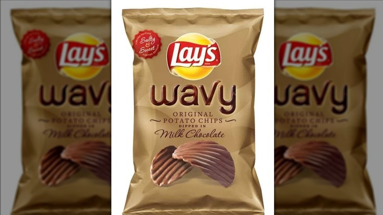 Sweet and salty combinations are at the pinnacle of snack foods, but it's not often that you find potato chips that offer any sweetness to them. That's a shame, considering that potato chips are generally the first snack that we think of when we're imagining a salty snack. However, at one point in the brand's history, Lay's decided that it was time to unveil a limited-edition sweet and salty chip combo that we still dream about to this day. It was the Lay's Wavy Milk Chocolate-Covered Chips, and it might just be one of the greatest things the company has ever done.