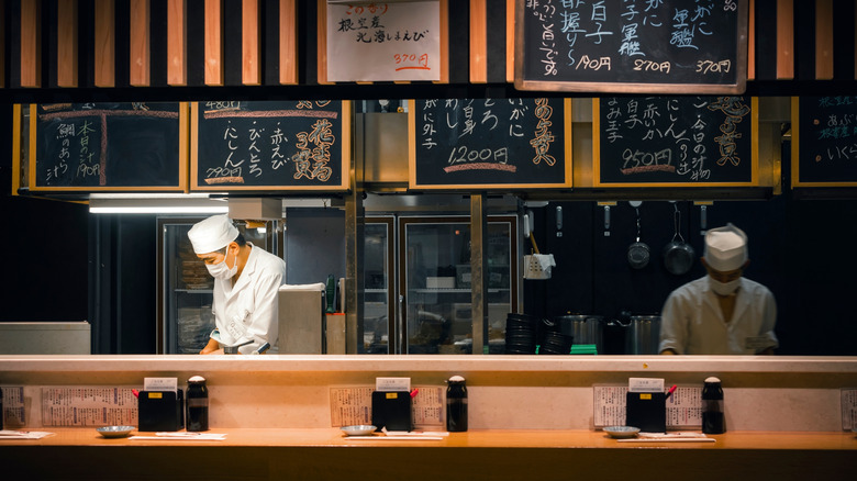 Bourdain, being Bourdain, made note of many other restaurant red flags — many of which can also be applied to sushi restaurants. Punny sushi roll names are one such example, as are bargain sushi prices or any sushi restaurant that has pictures of the maki, nigiri, sushi, or whatever else on its menu. Although, he'd say the same about any restaurant that had photos on the menu. Similarly, Bourdain's take on sushi restaurants serving steak can be extended to all restaurants.