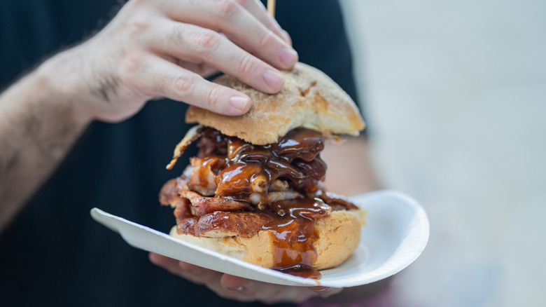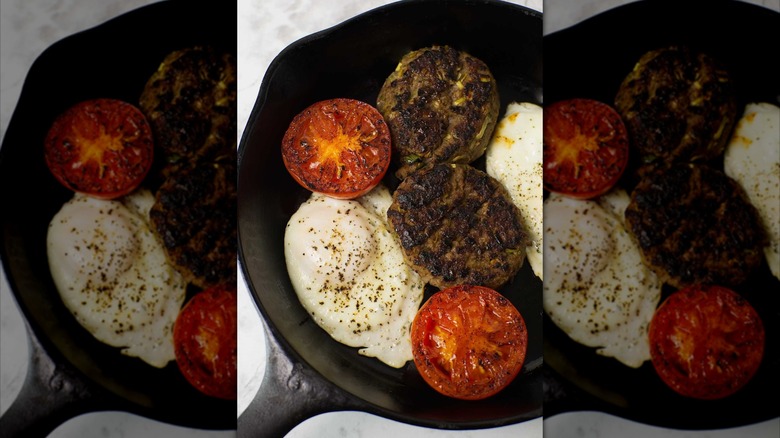 Ulster is the ancient name for Ireland's northern provinces, but today, it's often used to refer to Northern Ireland (especially by Unionists). An Ulster fry is very similar to other regional fried breakfasts, but there are a few key differences. Traditionally, alongside sausages, bacon, eggs, and tomatoes (all cooked in bacon fat), it also features fried potato bread and soda farls. We'll come on to farls shortly, as they're an iconic Northern Irish food in their own right, but in a nutshell, they're round slices of flat soda bread. Today, many different variations on the traditional recipe are found across Northern Ireland, including vegan and vegetarian options, and versions made with avocado or poached eggs.
