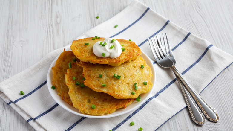 Similar to a hashbrown, boxty is basically a fried potato pancake. It's typically made with soft, mealy potatoes and buttermilk, and is often eaten for breakfast with eggs and bacon. That said, boxty is incredibly versatile; it also goes with salad, smoked salmon, or even beef stew. For some, an Ulster fry isn't complete without boxty.