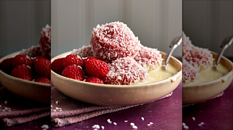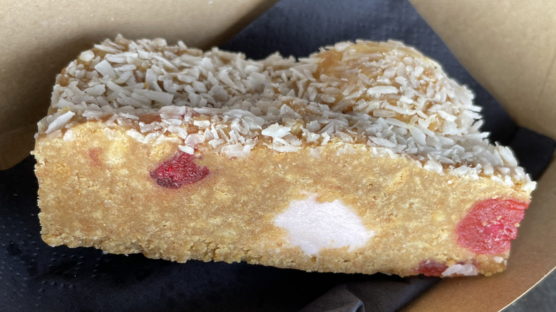 Jammy Joeys are another classic Northern Irish sweet treat. Developed in the 1980s by Howell's Handmade and now produced by the popular Craigavon-based Irwin's Bakery, the treat consists of a Madeira bun covered in raspberry jam glaze and desiccated coconut. Today, the bakery makes many different twists on the classic, like the Wee Lemon Joeys, for example, Wee Caramel Joeys, Wee Chocolate Orange Joeys, and Snowy Joeys, which are covered in plain icing and coconut. You can eat Jammy Joeys as they are, but they're also pretty tasty with fresh fruit and hot custard, too.