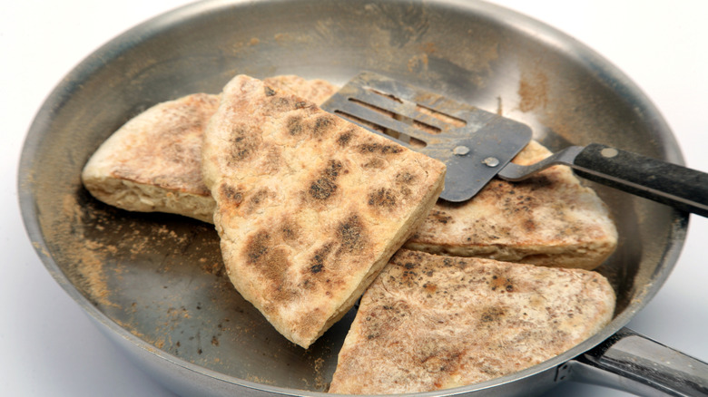 Potato bread (also known as potato farl) is very similar to a soda farl, but of course, there is one blatantly obvious difference: It's made with potatoes. In fact, potato bread is made with just potatoes, flour, butter, and salt. In Northern Ireland, potato bread is traditionally fried in bacon fat, cut into triangles, and served with an Ulster fry, but it's also tasty on its own with butter.