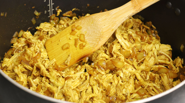 If that all sounds like too much work, your food processor can also be a hands-free solution to shred chicken. Just use the paddle attachment rather than the blade, so that you don't end up pureeing it. A similarly easy viral hack for shredding chicken uses a hand mixer. There are plenty of methods out there, and as long as the chicken comes out nicely shredded, it's all in your hands.