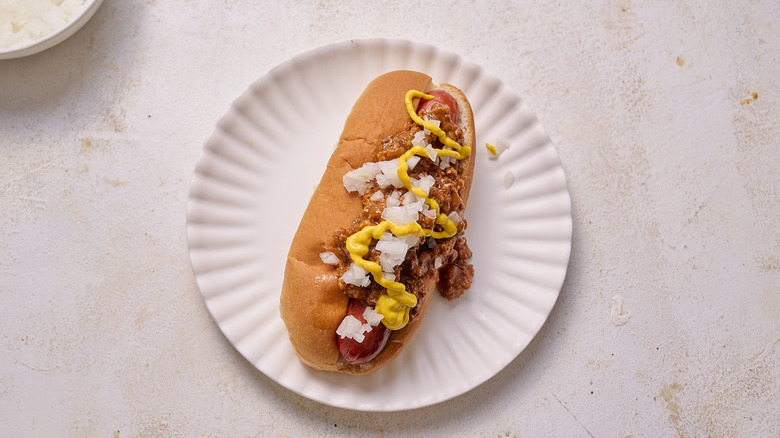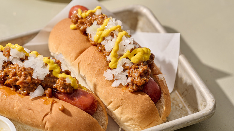 Though the most traditional Coney recipe includes a few hard-to-find ingredients like beef hearts and suet, recipe developer Michelle McGlinn's version allows anyone to make Coney dogs at home. Her Coney Island hot dog recipe is an easy, pantry-friendly version of the Detroit classic, made with ground beef, crackers, and vegetable shortening. Just imagine a rich and beefy sauce simmered with cracker crumbs and spices, spooned across hot dogs, which are topped with mustard and onions. It's as close to a real Coney dog as you can get without setting foot in Detroit.