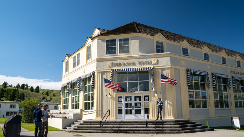 Humans have to eat, and there are plenty of dining options in Yellowstone's northmost village. Mammoth has a Sinclair gas station and general store, both of which sell standard roadside snacks and ice cream. Like its counterparts, the general store stocks alcohol and cheese, butter, and bananas, as well as processed meats and other camp cooking staples. The mineral-stacked features of Mammoth may look like forbidden salt, but you can pick up a soft pretzel from the general store snack bar instead.