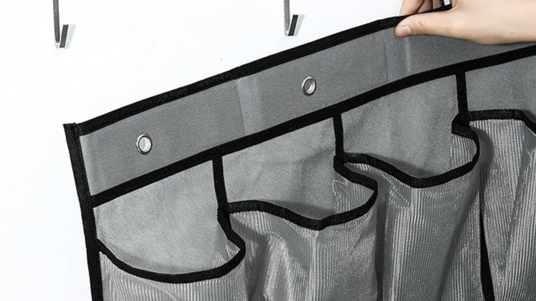 Over-the-door shoe holders instantly create brand-new storage space by shifting items from shelves to backsides of pantry- or kitchen-entry doors. Most come with clear or opaque built-in mesh or plastic pockets ideal for tucking in lightweight items like snack or tea bags, sugar packets, granola bars, lunchbox chips, and oatmeal packets. This MISSLO Over the Door Shoe Organizer on Amazon features 24 large mesh pockets for keeping items accessible and safe from dust. Consider labeling each pocket for other household members.