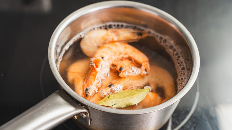 The science behind shrimp's hypersensitivity to boiling comes down to the strength of their protein bundles — or rather, the lack thereof. These shortened fibers are delicately held together, protected by just a thin layer of connective tissue. It's all too easy to accidentally bubble the seafood at leaching temperatures or get distracted and allow it to overboil.