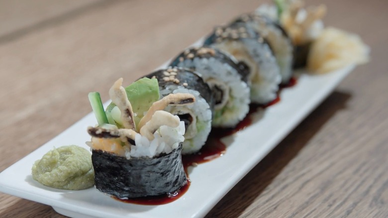 The creepy-crawly that you might want to build up to is the tarantula. Blais recalls, "That was the one, the whole process, even when this first came in front of me, I was like, 'Tarantula. Now this is a big personal challenge. This is a true game show here.' ... It wasn't my favorite texture. It was almost ... like a tempura paperback book." The tarantula's jet-black color was even more disconcerting. "When you made this sushi roll, it looked like truffles. There was a part of me that when I got done, I was like, 'I hope this didn't ruin truffles for me.'"