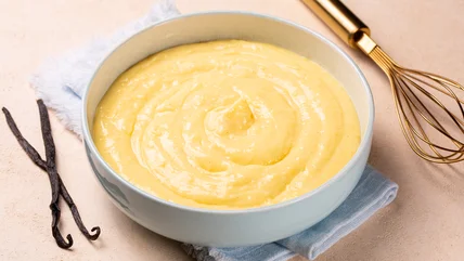 Some custard preparations also incorporate thickening agents like gelatin, flour, or cornstarch for a richer texture. These preparations are less tricky to execute and can be brought to a full boil, as the thickeners protect those delicate egg proteins from prematurely scrambling. (Important note: Puddings are thickened with starch, whereas custards are thickened with eggs, so don't overdo it.) Custard-centric desserts include caramel flan, French éclairs, crème brûlée, egg tarts, Bavarian cream, Italian zabaglione, and more. Also, compared to crème anglaise, custard has a much wider range of savory-leaning applications, like custard-based quiches and frittatas.
