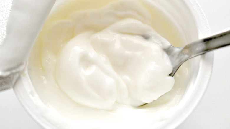 Whether you're spooning yogurt into a granola bowl, adding it to a homemade cake, or stirring it through a creamy dressing, yogurt is a fantastic addition to a variety of sweet and savory dishes. You can always count on yogurt to deliver richness, creaminess, and tang, with a simple dollop going a long way in transforming a dish into something a whole lot more satisfying. If you're a regular in the yogurt aisle at the grocery store, you'll have noticed that much of the fridge space is taken up by either plain or Greek yogurt. And while these trusty staples are always a solid option, there are plenty more yogurt products to explore. This creamy delight also comes in other formats, each with its own unique consistency and level of natural tanginess.