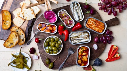 Peeled, thawed, and deveined shrimp can be pickled in a variety of seasonings. Even a basic recipe of olive oil, Old Bay seasoning, lemon zest, and fish sauce can yield a delicious topping for your toast, but the idea is to balance sweet, acidic, and salty flavors in your creations. You can also pickle vegetables to provide options for guests to build toast for themselves by letting carrots, celery, red onion, and red peppers soak in lemon juice, Champagne vinegar, olive oil, and seasonings.