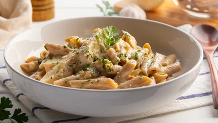 If you're reheating the sauce over the stove, you can add a little cream or water to it to thin it out in a shallow saucepan over low heat. Once the sauce starts to steam and lightly bubble, you can add the pasta. If you're reheating pasta alfredo, the same method of adding cream or water to the sauced pasta applies. You'll want to gently stir the pasta as you heat it on low heat so as not to tear the noodles. You can also heat pasta in an oven-safe dish with some added liquid, covered in a preheated 350-degree oven, stirring at intervals.