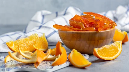Dip your strands of candied orange into melted chocolate to create a striking chewy snack or chop them up and incorporate them into cake batter to make a rich and complex fruit cake, panettone, or stollen. Candied orange peels are so versatile that you can even stir them into homemade granola, trail mix, or shortbread (this recipe for candied orange shortbread is buttery, fragrant, and packed with citrus flavor). However, as they have a chewy consistency, you can also enjoy them straight out of the container in the same way as you'd eat gummy candies. And of course, as they're homemade, you can feel safe knowing they don't contain unwanted preservatives, additives, or colors.