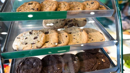 Of the four cookies our team tried (oatmeal raisin, chocolate chip, white chocolate chip in chocolate dough, and white chocolate chip), three left a terrible impression on us and our taste buds. The chocolate cookie with white chocolate chips was the worst of the bunch. Texturally, it was grainy, like the sugar wasn't properly mixed into the dough; taste-wise, it was sickly sweet. It also lacked chocolate flavor, despite containing double the amount of chocolate. The element that made the double chocolate cookie even worse was the white chocolate chips. Not only did they not taste like chocolate, but they also had an unpleasant, artificial flavor that tasted as if they were made exclusively with margarine and sugar.
