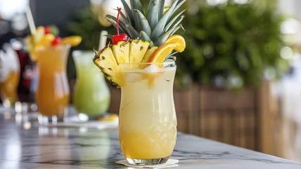 Speaking of margaritas, you could mix your spicy seasoning, Tajín or chili powder, with coarse salt. Salt enhances sweetness, so it will highlight the piña colada's coconut while bringing out the pineapple's sweeter notes. Combining it with another seasoning gives you that quality plus the heat you're seeking. For example, give the cocktail an Asian twist with gochugaru flakes and lychee puree instead of coconut. Alternatively, create a more autumnal or holiday-themed iteration with cardamom, cinnamon, allspice, or ginger plus pomegranate or cranberry syrup. Florals also go well with tropical fruits and hints of spice, so consider making your own upgraded simple syrup with hibiscus or jasmine.