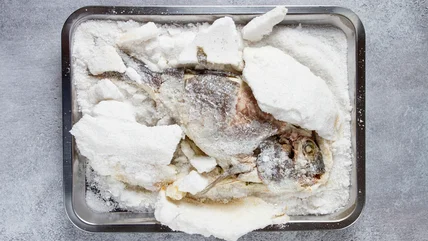 The technique is relatively simple, but there are still a few decisions to make. You know the right size of fish, but you will still need to choose a species as well as a particular type of salt. And then there are a few tips around prep that will ensure you end up with a stunning and delicious meal. As for the species, you can really cook just about any round fish that fits the size specifications, so let your palate lead the way. Fish like snapper, branzino, dorade, small salmon, striped bass, and trout are all popular options. Your best bet is to talk with the fishmonger at your local market and see what they have on offer. From there, it's all down to your tastes.