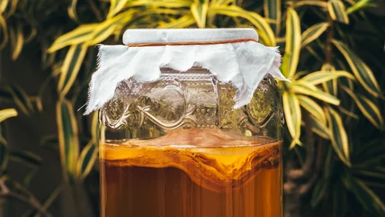The second reason you might be bloated after kombucha is a little more unusual. As kombucha is fermented tea, it's a probiotic. In other words, it's full of good bacteria. These bacteria secrete antimicrobial peptides which get rid of harmful bacteria, a process that creates gas and can cause bloating. If this is the reason you're bloated after kombucha, it should improve with regular consumption of kombucha or other fermented drinks. Fermentation newbies should introduce things like kombucha, kimchi, and kefir slowly, allowing time for their gut biome to adjust. It'll be worth it in the long run, and not just for the health benefits. Fermented foods are delicious, varied, and in many cases, they're easy to make and store at home.