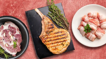 Additionally, some may argue that pork isn't as nutritious as other red meats, which isn't true broadly speaking. There are differences between cuts, of course; for example, a pork loin chop has a different nutritional profile from a tenderloin. If we compare a pork loin chop to a T-bone steak, though — which is its beef equivalent — you'll find pork provides slightly more protein and slightly fewer calories (with less fat). While beef is higher in iron, pork is generally lower in sodium, and higher in potassium, vitamins A, E, and D (among other benefits), so nutrition's not an issue.