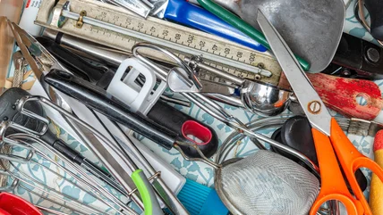 Finding a neat solution to sorting multiple little items in one spot is one of the smartest organization hacks for clearing up counter space. Not only do you literally move papers, keys, and even odds and ends that just seem to appear, like paper clips and batteries, off the counter, for tidy, open space and room to meal prep and cook, but you can even transfer these things out of drawers and cabinets. You can then use those newly freed-up spots to store anything else on your counter that you don't use that often.