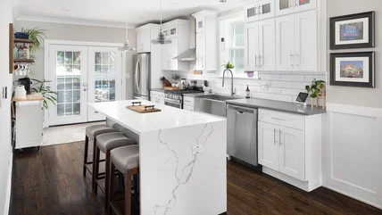 The elevated price point isn't just because of high demand. It mostly reflects the need for extra materials, precision fabrication, and skilled labor for installation. While standard countertops typically feature a flat slab resting atop the cabinetry, a waterfall countertop requires more of the same material wrapping down the sides. On kitchen islands, a popular place for waterfall counters, the price can vary depending on whether you opt for partial versus full‑height extension to the ground on one side or both. Material choice matters as well. The market price per foot for granite versus quartz, marble, concrete, porcelain, or wood will differ. Generally, options like marble will cost more than wood or concrete.