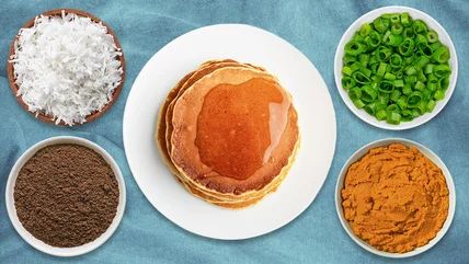 Who says pancakes have to be sweet? If you're after something savory, scallions are an ideal add-in. They give the batter a hint of aromatic flavor and a striking pop of green, creating a batch of pancakes with a fantastically fresh and wholesome feel.