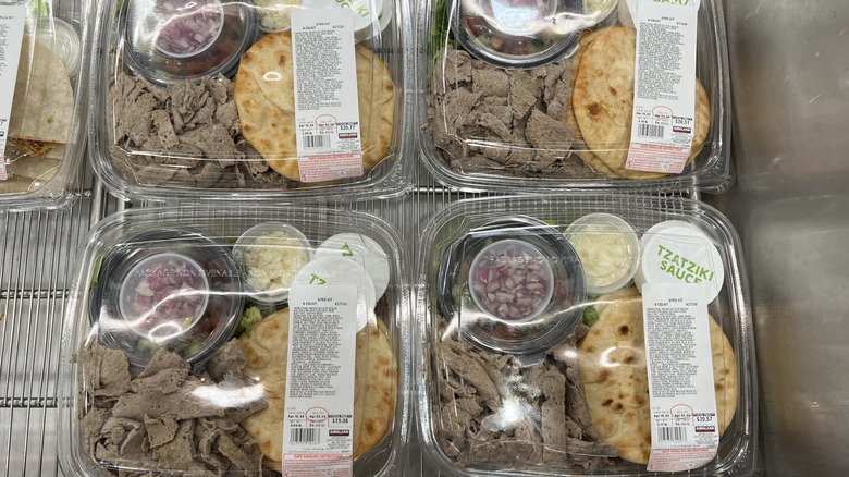 This controversial opinion may raise a few eyebrows, but Costco's gyro meal kit lands on the skip list for a few reasons. Firstly, fans are divided over the quality of the kit's ingredients. Many praise the amount and variety of veggies packaged alongside the other gyro staples, while others complained that the lettuce and tomato were wilted and soggy. Some commenters have lamented the quality of the meat, claiming that it was dry, underseasoned, and tended to shrink down when heated so that a meal kit touted to feed a family of five or six actually only fed two or three people. But the top complaint was about the lackluster tzatziki sauce.