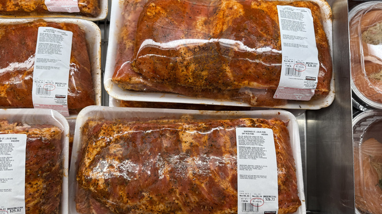 Costco's St. Louis-style ribs have received mixed reviews, and unfortunately, many of them aren't great. A frequent complaint is the excessive fattiness of the ribs, with some customers saying that much of what you're paying for ends up being inedible. At $3.49 per pound, the price seems right, but with this likely being a Costco meal for crowds, you'll end up shelling out close to $30 for around seven pounds of ribs. That's tempting! Except, the ribs may come with a lot of weight, a significant portion is fat, so it's hard to feel like you're getting a good deal, even at this price point. To add insult to injury, many reviewers found the seasoning overly salty and otherwise bland.