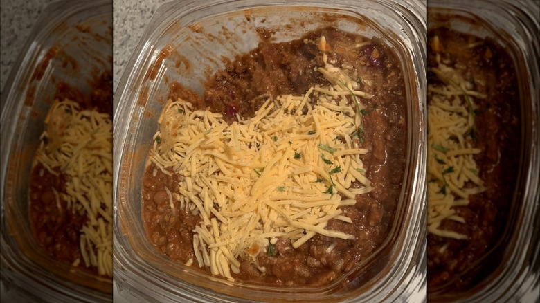 Costco's beloved tub of beef chili sparked quite a bit of online debate when it returned to store shelves in late 2023. As with any good old-fashioned American debate, spirited Costco fans took to the comments section to argue the merits of the inclusion of beans in a product labeled "chili." While some shoppers see no issue with adding beans into the mix, some passionate chili connoisseurs were less than thrilled, with one reviewer referring to the product as "bean soup with cheese."