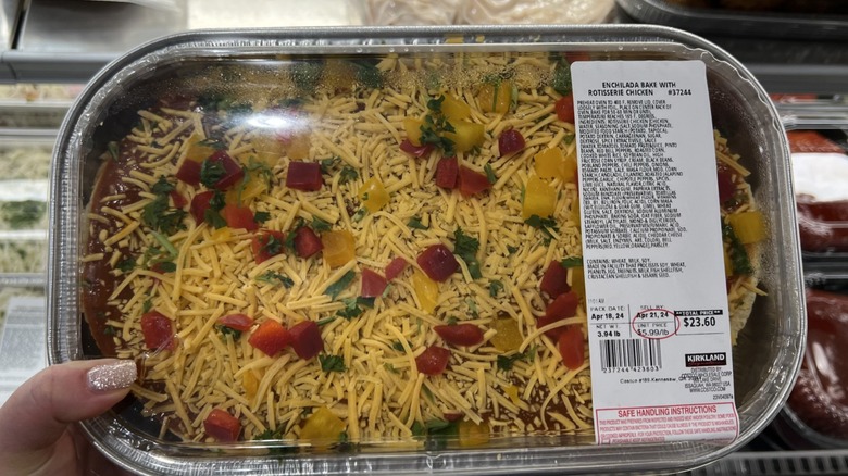 But the best part about Costco's enchilada bake? The hefty casserole feeds roughly six to eight hungry mouths — especially if you pair it with a pre-packed salad kit or side of rice. That works out to a wallet-friendly $4 (or less) per serving of gooey goodness. Even if you're just feeding a family of one or two, the leftovers make a mouthwatering lunch. Just like a homemade casserole, the flavors of this smoky, cheesy, chicken-packed bake seem to meld together even more after an extra day or two in the fridge. It's a win-win.