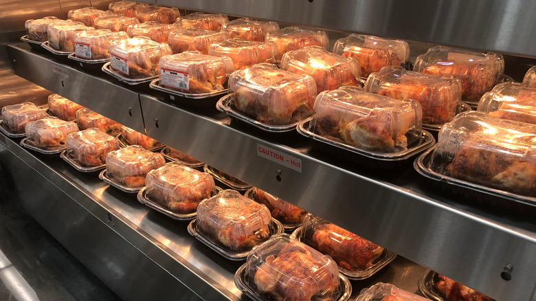The deli churns out these golden brown birds all day long, but there is a way to ensure that you're grabbing the absolute freshest rotisserie chicken. While you're browsing the aisles, keep your ears primed for the sound of a bell. When the bell tolls, that's when a fresh batch of chickens has been set out for your purchasing pleasure. But don't sweat it if you miss that ding — the birds are never left hanging for more than two hours before they're swapped out in accordance with USDA regulations.