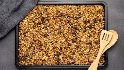 Ready to try homemade granola with rolled oats? Try our homemade crunchy granola recipe that has almonds, pecans, and coconut oil. Another option is our baked apple chip granola recipe that combines the fruit with cinnamon, pumpkin seeds, and a few other ingredients. For those who skirt gluten intake, try this gluten-free coconut pecan granola as a snack or yogurt parfait topping. Despite what recipe you try, don't forget the rest of our pro tips for making granola, like how to properly store it later so your effort doesn't go to waste.