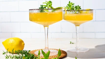 According to Ksenia Prints of At the Immigrant's Table, the Paper Plane cocktail is an American darling that is beloved by bartenders across the country, and traditionally features bourbon, lemon juice, Aperol, and Amaro Nonino. In this popular new variation, we keep the balanced sweet, bitter, and citrusy profile of the original, but add another aromatic layer with elderflower liqueur and herb garnishes.