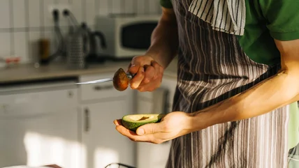 Avocado hand refers to a laceration on the palm from suspending the fruit in your hand while slicing or de-pitting. The injury is typically caused by holding the fruit in your non-dominant hand and using a knife in your dominant hand to carve into an avocado or remove the seed. In 2018, roughly 8,900 avocado-related hospital visits were documented by the U.S. Consumer Product Safety Commission. These cuts can be quite severe, potentially causing injures to digital arteries in your hand or flexor tendons in your fingers. Cutting avocados with precision can spare you the pain of this surprisingly common injury. By making small cuts into your avocado on a stable, flat surface, you'll be slicing your way to guacamole injury-free.