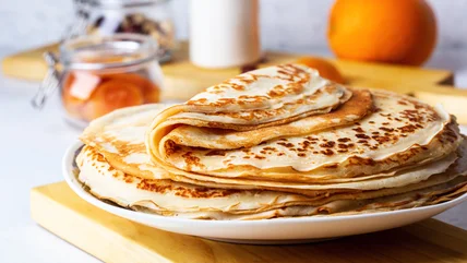A typical easy pancake recipe calls for about one cup of flour, one cup of milk, an egg, and a tablespoon of melted butter. It's recommended to double the amount of fat if you're turning it into waffle batter, so you'd use two tablespoons of melted butter instead of one. Or, just add in a few spoons of coconut oil.