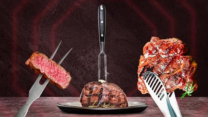 This mistake isn't solely about etiquette; it's about the quality of each bite. When you cut up your entire steak as soon as it arrives, the meat immediately starts to get cold, and the flavorful juices run out. You want those beefy juices in the meat, not on your plate. It's also not enjoyable for other diners to watch you saw into your steak like a barbarian. Or worse yet, a helicopter mom. Here's the protocol: when your steak arrives, use your fork and knife to cut a bite-size piece. Place the steak in your mouth and savor.