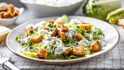 Kale is the perfect leaf choice when you make your Caesar dressing ahead of time and toss the leafy greens with the dressing long before serving. Not only does this give the flavors ample time to meld together, but the sturdy vegetable turns slightly tender, too. If you do want to toss the salad together right before serving, Kaplan has tricks for softening the greens. "A lot of people think kale is too tough, and the trick may lie in how you prep it. Instead of leaving big, chewy leaves, give it a nice chiffonade or chop it into smaller pieces so it's easier to eat."