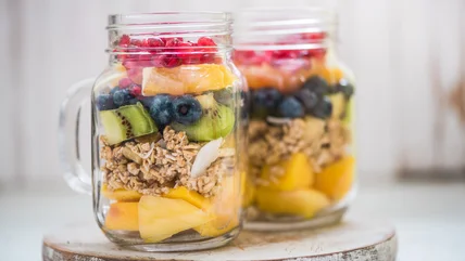 Minimizing the oxidation process is also one of the reasons a mason jar is a great pick. Tightly sealed, it's perfectly efficient at limiting the fruits' air (and, therefore, oxygen) exposure. Moreover, glass is a preferred material for fruit salad storage since it limits moisture build-up that could potentially lead to slightly mushy, bacteria-prone fruits. All without the unpleasant scent that plastic containers sometimes imbue onto your food.