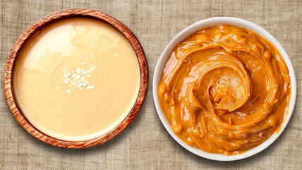 Peanut butter and tahini have a lot in common: Both are made by grinding seeds or legumes into a thick paste, both can be spread on toast, whisked into dressings, or blended into smoothies, and both are calorie-dense staples that pack a mix of fat, protein, and minerals. On the creamy surface, they might even look interchangeable. But when it comes to their nutritional profiles, there are some key differences that can be helpful to know about, especially if you're tracking your macros or just trying to stay aware of what fuel you're giving your body.