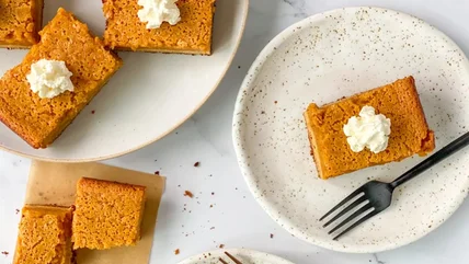 If you're from the Midwest, gooey butter cake is a fact of life, served at family gatherings, church functions, and school potlucks. And when the fall rolls around, pumpkin gooey butter cake is often the dessert of choice on the Thanksgiving table. Dense and gooey in the middle, it has a texture all its own, which is achieved by making it in two layers — one cake layer on the bottom and one buttery, cream cheese layer on top. Swap this for pumpkin pie at Thanksgiving and you won't hear a single complaint.