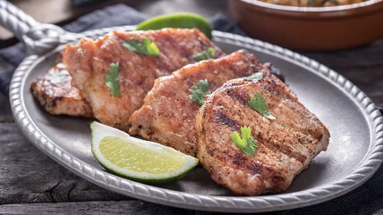 To boost the caramelized quality of your chops further, marinate them in a mixture of honey and soy. These sweet and salty ingredients will counterbalance each other and tenderize the meat, resulting in a chop with a complex character and amber appearance. Better yet, the marinade will cling to all the nooks and crannies you've cut into the pork, guaranteeing that each piece is full of umami seasonings.