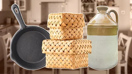"Rattan baskets are the definition of form meeting function in a country kitchen," creative director Surjit Singh Namli says. In his experience, the natural texture of this eco-friendly material can add a welcoming warmth and tactile element to the kitchen. For those looking to invite the farmcore movement into their kitchen, rattan serves as a more organic alternative to conventional plastic or metal storage containers. It also serves as a low-maintenance option that won't require any cleaning efforts beyond a quick swipe with wet wipes.