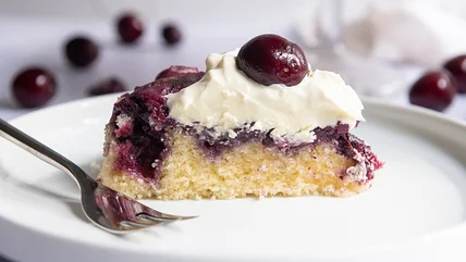 Would you believe us if we told you that this showstopping treat could be prepared in just 15 minutes? Using a trusty microwave method, this cake is indeed ready to serve in a jiffy. There's a layer of cinnamon-spiced cherries on the bottom, and a simple sponge cake batter on top, all cooked in a microwaveable bowl until fluffy and risen. To serve it, you'll flip the bowl upside down, leaving the gooey cherry layer on top. Serve this beauty warm with more fresh cherries and plenty of whipped cream.