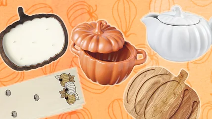 Another great pumpkin-shaped serving item are these small appetizer plates, which come in a pack of four for $9.99. They're a simple but efficient way to make the very first dish of the dinner party feel special, without needing to do too much. Also, because they're on the smaller side, they're perfect for cocktail parties and won't take up a lot of space in the cabinets.