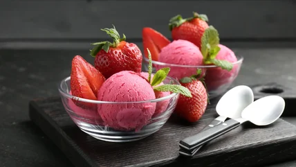 The easiest sorbet you can make at home uses frozen strawberries and frozen lemonade. Seriously, that's it. Just grab about four cups of frozen strawberries and about three tablespoons of frozen lemonade concentrate, toss them into a blender, and pulse until smooth. The frozen fruit gives the sorbet a creamy, icy texture, while the lemonade adds the perfect balance of tartness and sweetness. If you like your sorbet sweeter, you can add a little honey or sugar, but most of the time the strawberries are naturally sweet enough to make it just right.