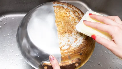 If you spend enough time in any kitchen, you will see the grim fate of many pots and pans. A baked-on black coating builds up over time until you can barely tell if the pan was stainless steel, nonstick, or enamel. You can still wash it to the point that it's clean and usable, but that carbon buildup is almost impossible to remove with traditional cleansers and sponges. That's where a product like Bar Keepers Friend comes in. Although it's formulated to remove the most stubborn baked-on stains, some people have trouble getting the residue off once they use it. Luckily, there's a solution for that. During a Reddit AMA hosted by the Bar Keepers Friend marketing team, the brand helped out some users who had tried the product but swapped one mess for another.