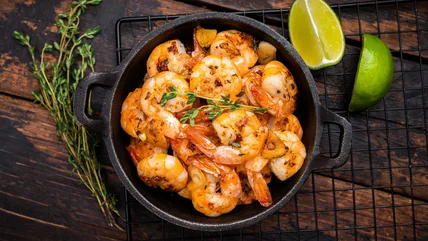 Some people also opt to brine the shrimp with baking soda and salt, which helps keep the crustacean plump. You can dry or wet brine the shrimp with baking soda and salt; either way, it's imperative to rinse them off prior to cooking to avoid the bitter taste the alkaline ingredient brings. Once the shrimp is patted dry, you can marinate it, or jump straight into cooking. The baking soda brine is commonly used before pan-frying or searing, but you can use it for other methods, like grilling. Use the method for a caramelized finish on sweet and spicy grilled shrimp, or brine the seafood with baking soda for tender-crisp roasted shrimp.