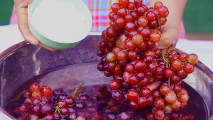 While baking soda is more effective than just using water at removing pesticide residue, it may actually be damaging to the skin of your fruit. According to a 2017 study published in the Journal of Agricultural and Food Chemistry, researchers indicated that it took between 12-15 minutes to remove pesticide residue from apples when soaking them in baking soda and water. Apples have a tougher skin than some other fruits and vegetables, and they can better withstand the abrasiveness of baking soda. Fruit like berries and grapes have delicate skin that may degrade when in contact with baking soda for that long. Regardless of the skin type of the fruit you're cleaning, using baking soda alone doesn't remove contaminants and pathogens that can cause serious illnesses.