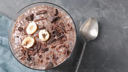 This is also a good recipe for eating on-the-go, and is naturally gluten-free and can easily be made vegan-friendly if you stick to vegan chocolate sprinkles and use dairy-free milk. The best part is that a chia pudding recipe is loaded with nutrients. Chia seeds are packed with fiber, omega-3 fatty acids, and a range of vitamins and minerals like manganese and iron. You're also getting extra protein and magnesium from the peanut butter, while the banana adds potassium and carbohydrates. That's not to mention the calcium bonus if you use whole milk.